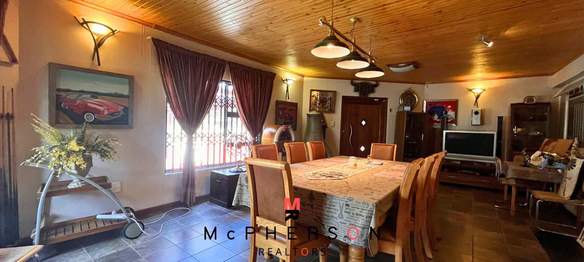 Large Dining Area with fireplace & built-in braai + buffet server