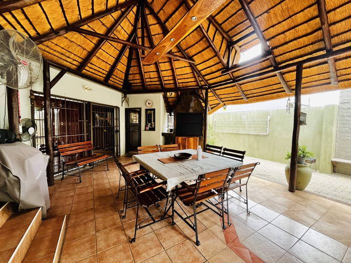 Entertainer's lifestyle in Elisenheim Estate, minutes from Windhoek, featuring a large covered patio with built-in braai, secure family surroundings and four bedrooms.