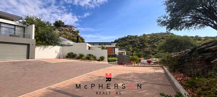 Entertainers' oasis in Ludwigsdorf, Windhoek — elevated design with panoramic lapa, pool and underground wine cellar; three self-contained cottages linked by elevator, includes 10 beds, 8 baths.
