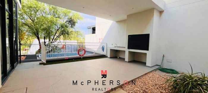 Effortless lock-up-and-go living in prime Suiderhof, within an intimate four-unit complex — indoor-outdoor flow to patio with built-in braai and private pool; three bedrooms, two bathrooms, double garage.